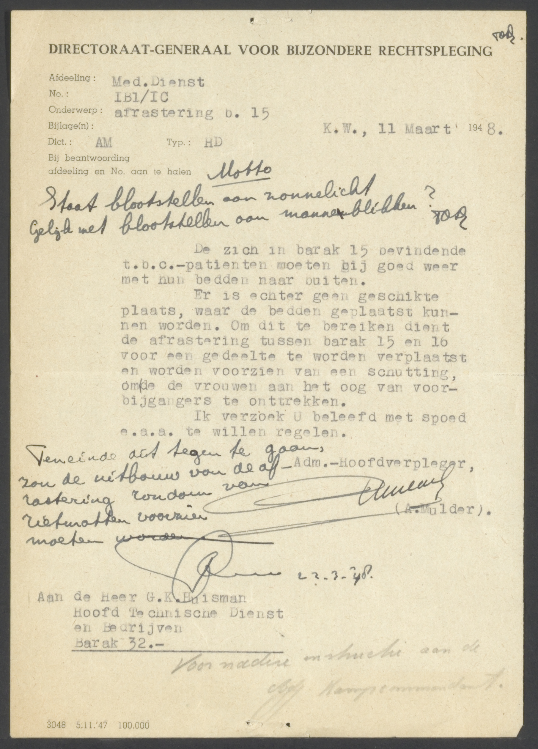 Brief van G.K. Huisman aan J.G. Buijvoets betreft verantwoordelijkheid behoud en onderhoud van Interneringskamp Westerbork