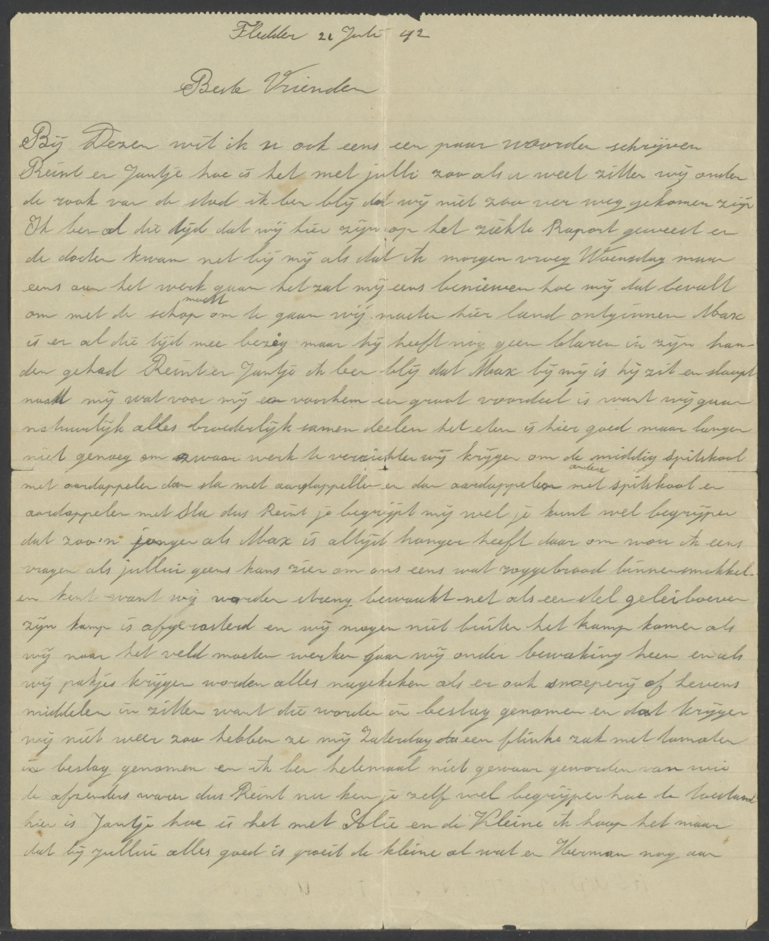 Van: Gosschalk, Joseph Aan: zijn vrouw Plaats: Havelte Datum: 1944-08-08 Onderwerp: ‘Kom vandaag helaas niet met verlof’
