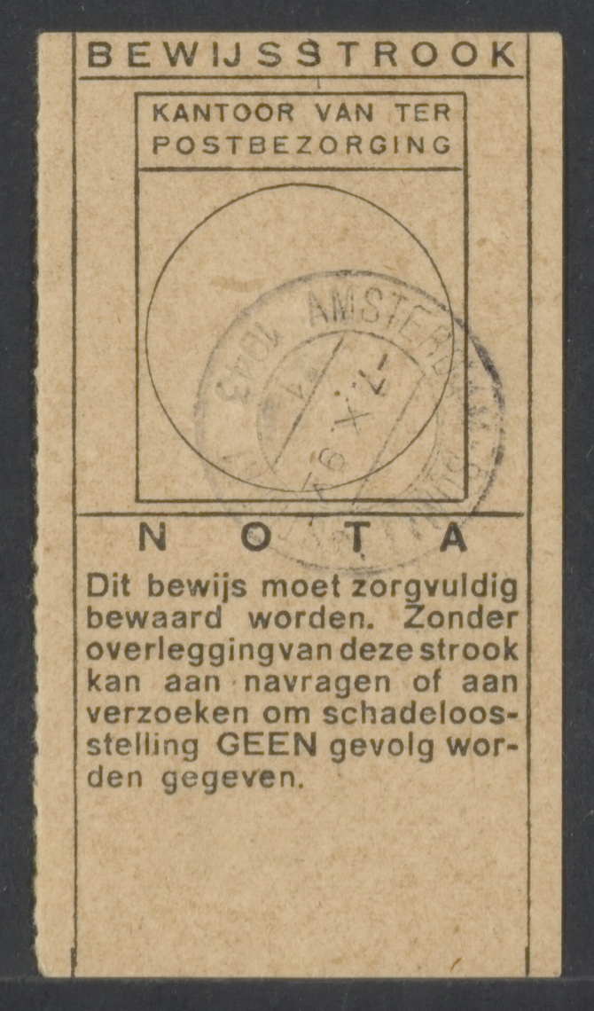 Bewijs voor het verzenden van een pakket aan Ro Acohen in kamp Westerbork