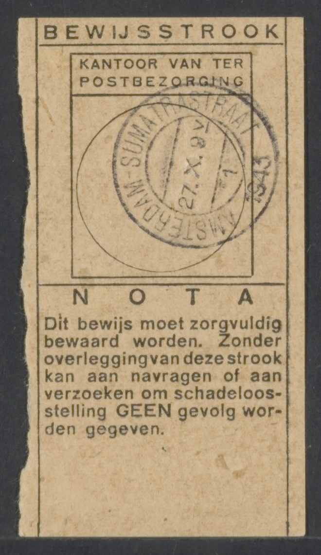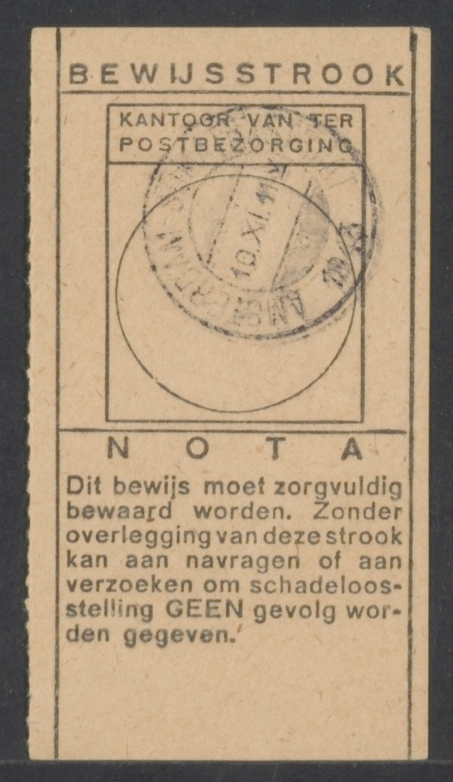 Bewijs voor het verzenden van een pakket aan H.B. Acohen in kamp Westerbork
