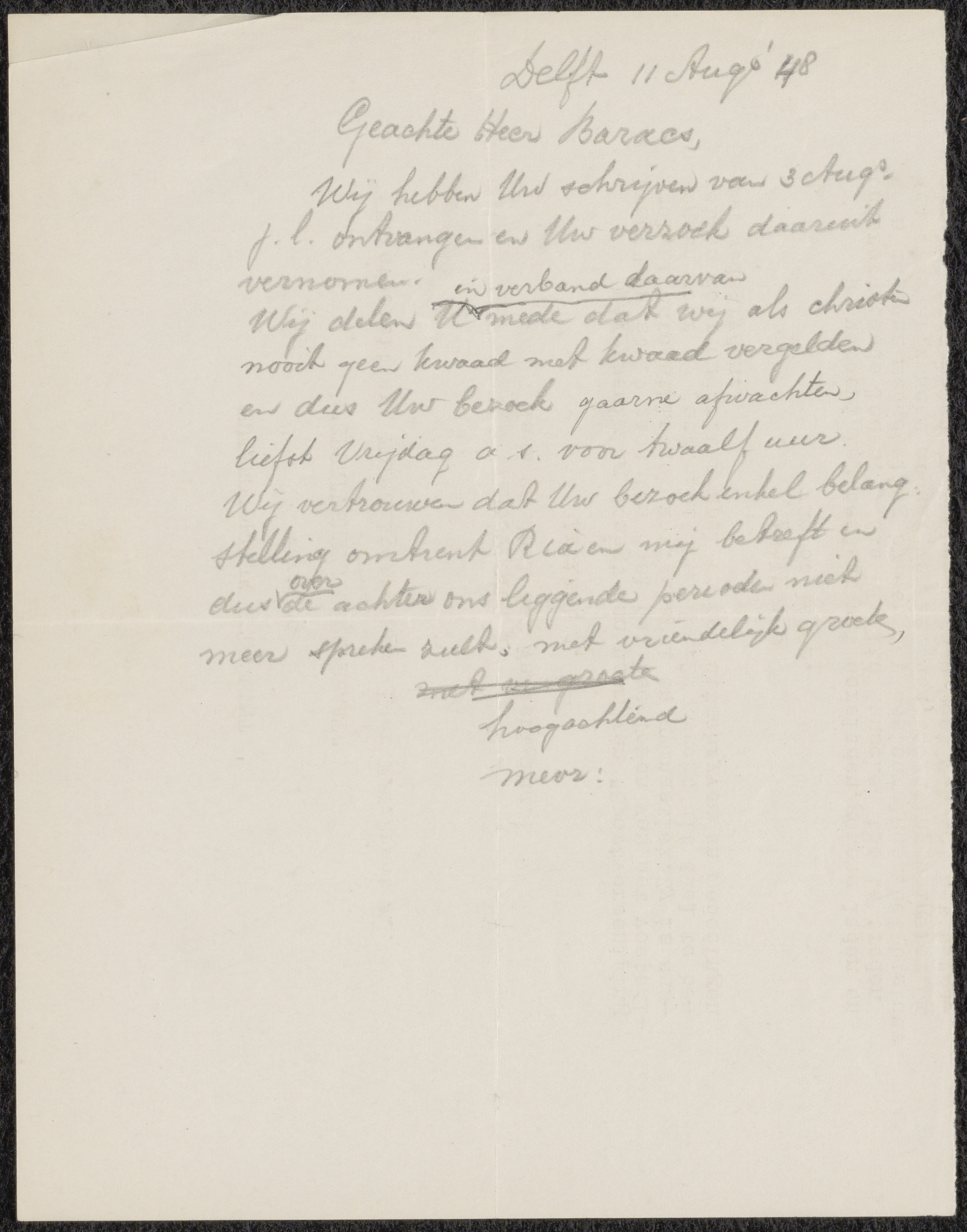 Brief aan mevrouw Oudshoorn over gerechtelijke uitspraak