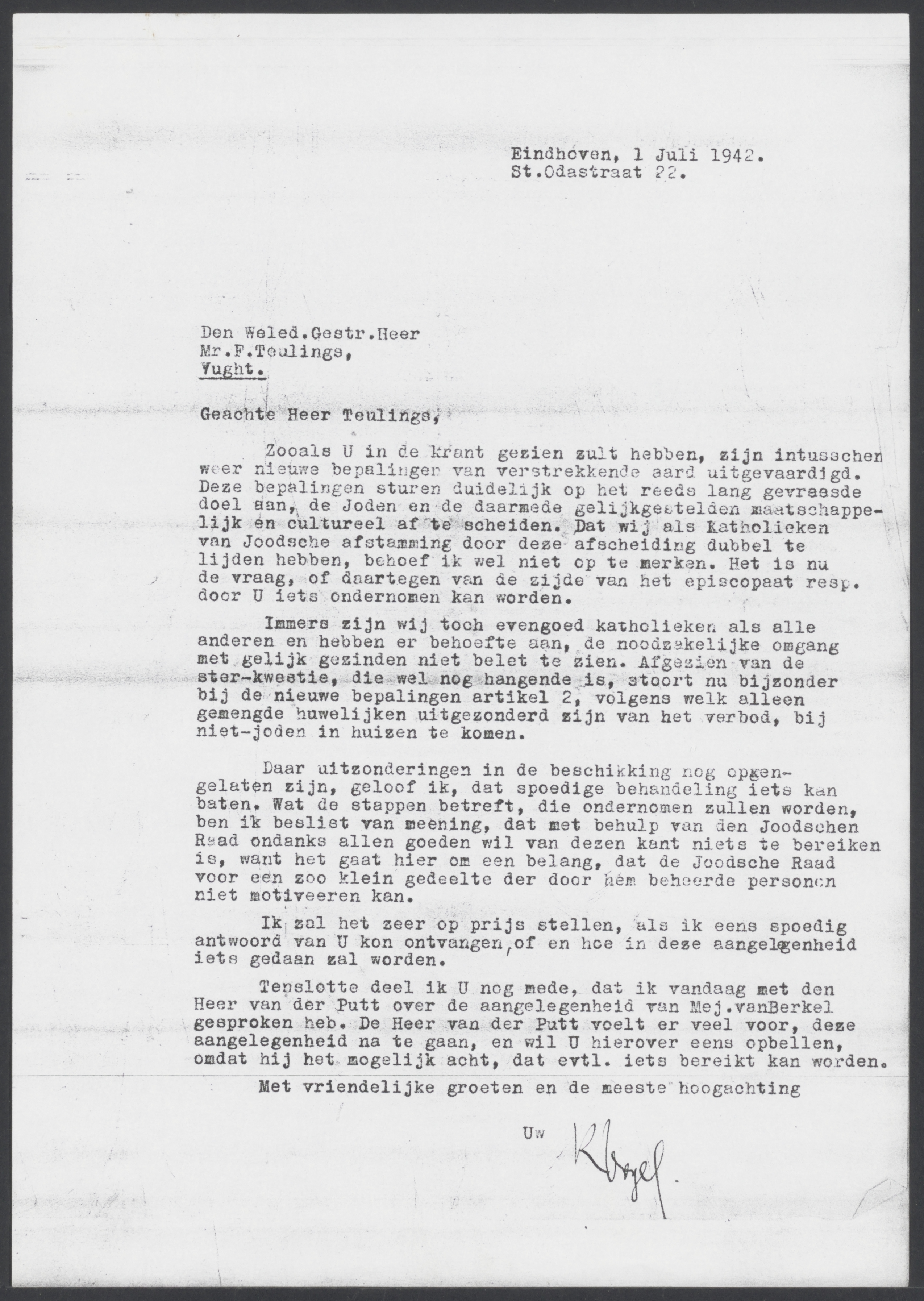 Brief van Kurt Vogel aan de bankiersfirma Lippmann en Rosenthal vanuit Eindhoven