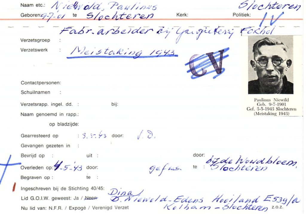 Systeemkaarten met namen van personen uit het verzet: Paulinus Nieuwold