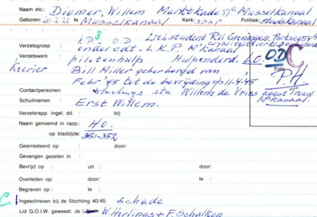 Systeemkaarten met namen van personen uit het verzet: Sietse Hindrik Willem Bergsma
