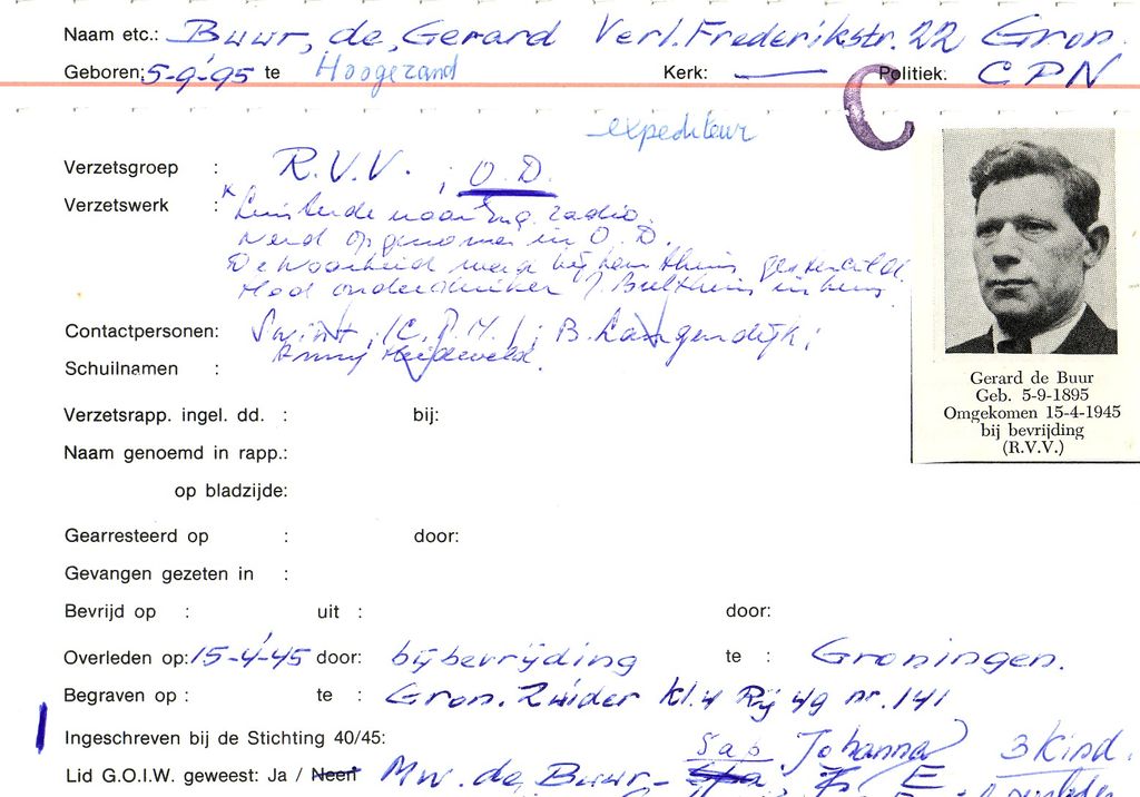 Systeemkaarten met namen van personen uit het verzet: Gerard de Buur