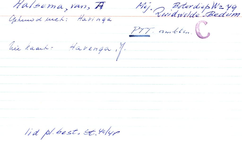 Systeemkaarten met namen van personen uit het verzet: Anna Johanna Steen