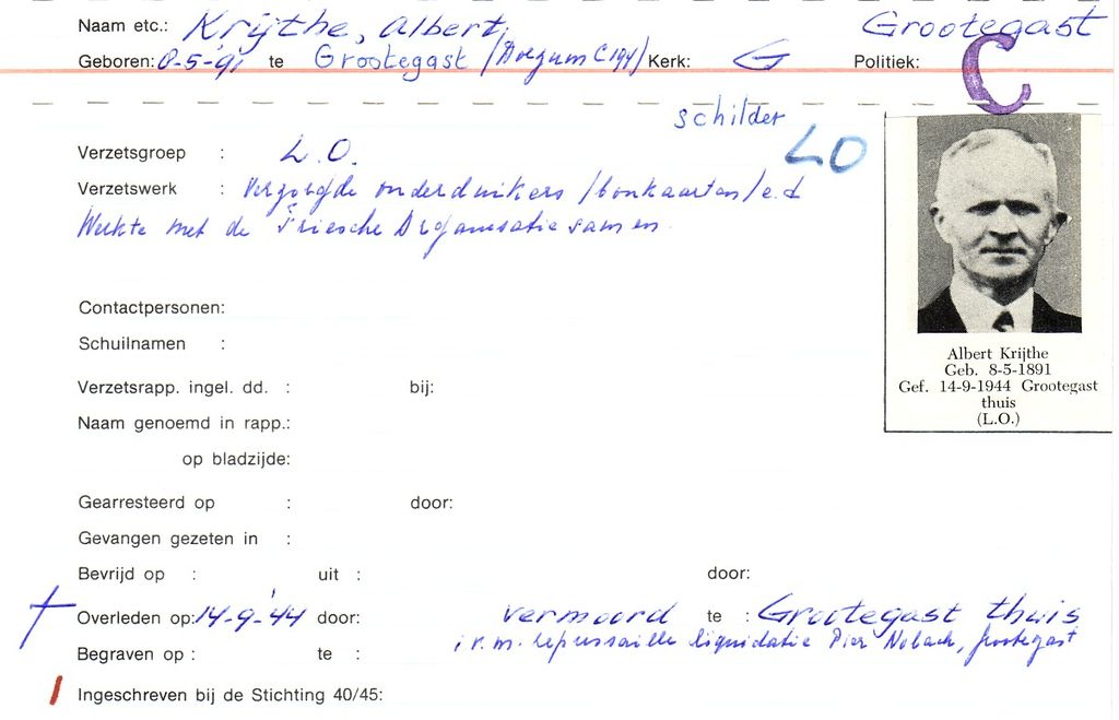 Systeemkaarten met namen van personen uit het verzet: Albert Harkema