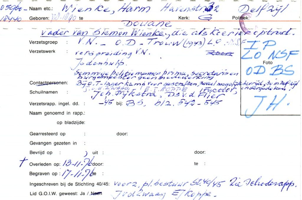 Negen maanden een joods meisje geherbergd, drie maanden een joodse man Gearresteerd door de SD, 18-07-1944. Vijf weken in het huis van bewaring vastgehouden, toen drie weken in Vught, tenslotte naar Ravensbrück