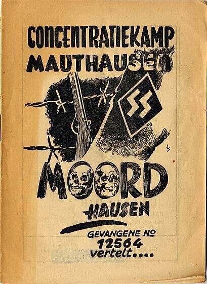 Persoonlijk verslag van het verblijf van 'gevangene 12564' in concentratiekamp Mauthausen, met op de achterkant de tekst van een persbericht van 15 juni: "In de afgelopen winter gaf H.M. de Koningin Haar voornemen te kennen, om te zijder tijd de slachtoffers van de binnenlandscha verzetsstrijd in de meest ruime zin des woords, geldelijk te ondersteunen. Gevolg gevend aan dit voornemen deed H.M. de Koningin dezer dagen eer bedrag van f. 500.000 overschrijven op rekening van de "Stichting 1940-1945". Onze landsvrouwe gaf het voorbeeld... Elke goede Nederlander volge!" Het boekje omvat 16 pagina's.
