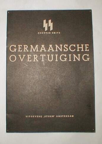 Een boek geschreven door de SS-er Schütze Smits getiteld: "Germaansche overtuiging" met zijn zwartwit foto, uitgegeven door uitgeverij Storm te Amsterdam. Het boekje telt 12 pagina's.