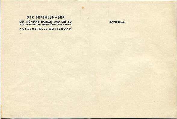 Blanco verzendbrief met briefhoofd "Befehlshaber der Sicherheitspolizei und des SD", Rotterdam.