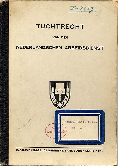 Boek met het Tuchtrechtreglement van de Nederlandschen Arbeidsdienst. Het boek omvat 44 pagina's.