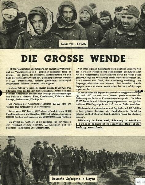 Geallieerd (Duitstalig) pamflet waarin het keren van de militaire kansen wordt besproken. Op de achterzijde worden de oorlogsmisdaden van de Duitsers in Polen veroordeeld.
