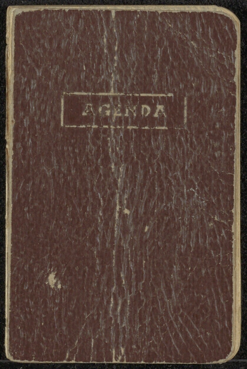 Agenda 1945 van de heer Boogaard met bruine Craquelé voorkaft. De achterkaft ontbreekt.