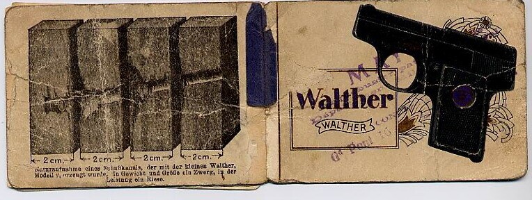 Een Duitstalige handleiding zonder kaft met informatie en aanwijzingen over het gebruik van het pistool: "Walther, Modell 9".