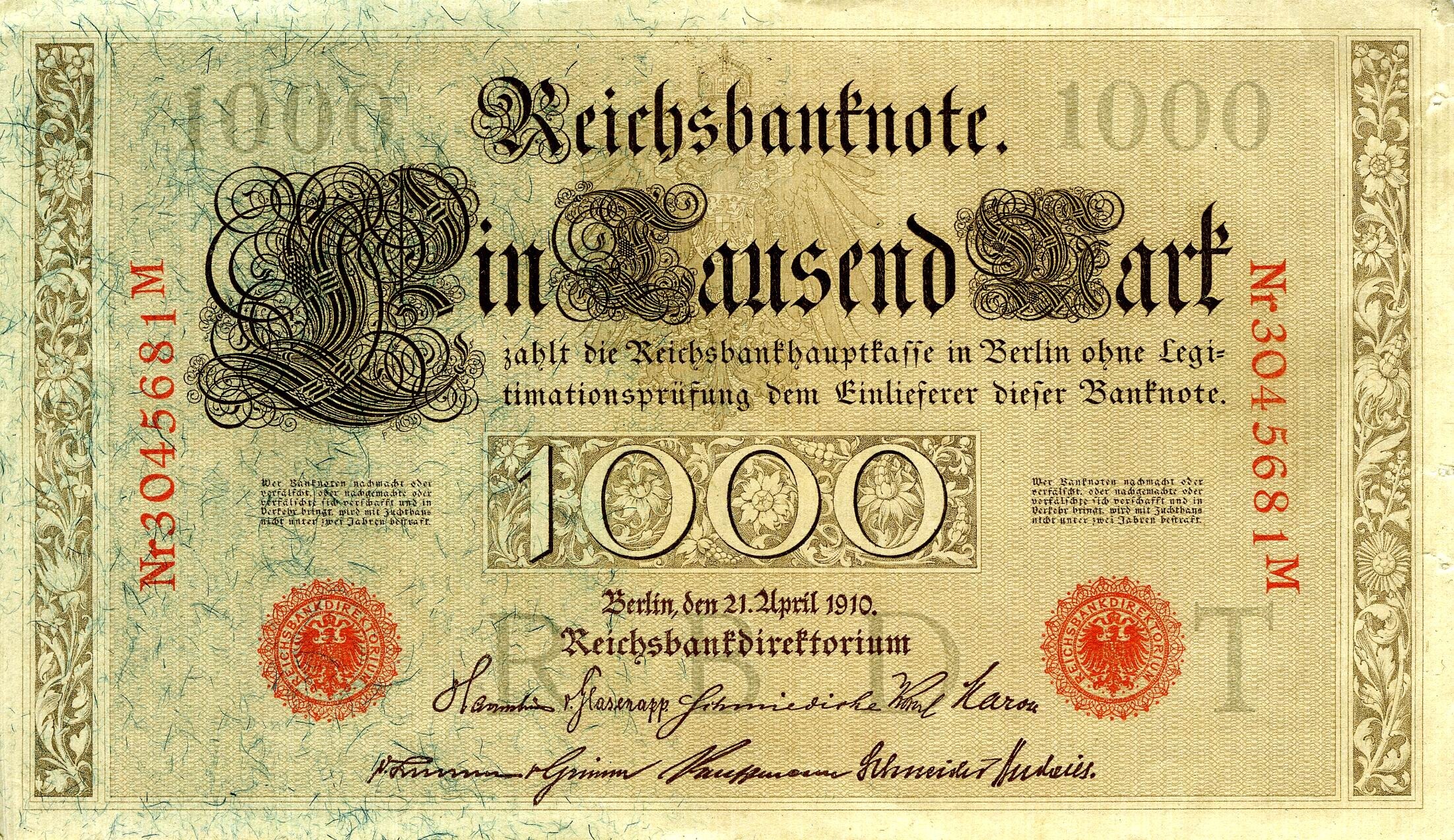 Reichsbanknote Ein Tausend Mark