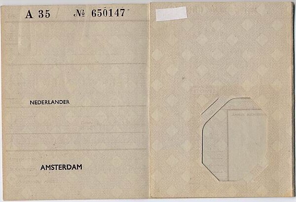Twee blanco persoonsbewijzen, het ene met als plaats van uitgifte Gilze en Reijen, het andere Amsterdam. Het bewijs met als plaats van uitgifte Gilze en Reijen is voorzien van vingerafdruk en een zegel met opdruk 'Kosteloos persoonsbewijs'. Los bijgevoegd is een blad met vier zegels met in rode opdruk het opschrift "Persoonsbewijs 1 gulden". Zegels en persoonsbewijzen zijn waarschijnlijk vervalst.