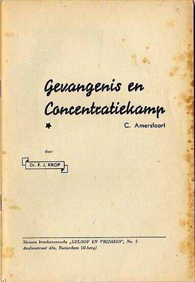 Exemplaar uit de ''Nieuwe boekreeks Geloof en vrijheid'. Het betreft nummer vijf: over het leven in kamp Amersfoort.