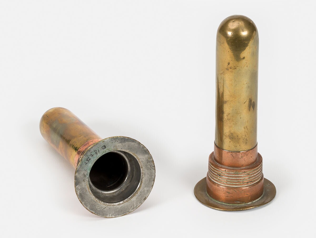 Twee hertzhoorns afkomstig van een contactmijn. Deze 'hoorns' functioneerden als het ontstekingsmechanisme van een zeemijn. In de hoorns zat een glazen buisje met zuur. Bij beschadiging of verbuiging brak het glas. Het zuur komt daardoor vrij en functioneerde als elektrolyt voor een droge cel die een elektrische puls de lading in stuurt. De lading van de betreffende contactmijn van het type M-08-4 bestond uit ca. 115 kg TNT. Deze mijn werd in juni 1946 geruimd bij de Middensteensbank in de Westerschelde ter hoogte van Westkapelle. De twee hertzhoorns zijn leeg.