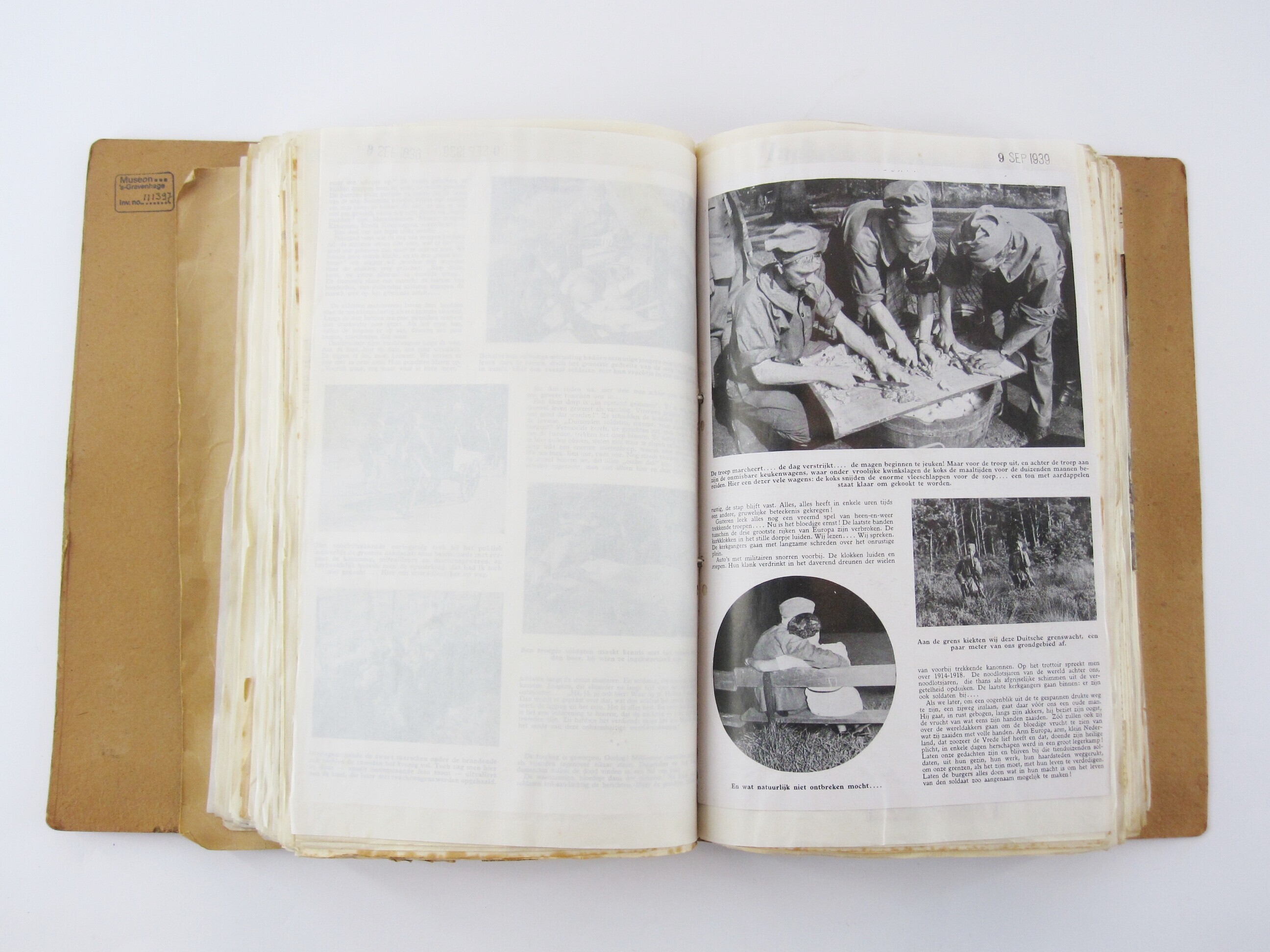 Plakboek met krantenknipsels en -foto's uit de periode september 1935 tot en met mei 1940. De krantenknipsels hebben betrekking op de toestand van de Nederlandse vloot, de verdedigingswerken, aangespoelde mijnen, torpedo's en legeroefeningen. De harde kaft van het album is lichtbruin. De bladen worden door een bindmechaniek met een veer bijeengehouden.