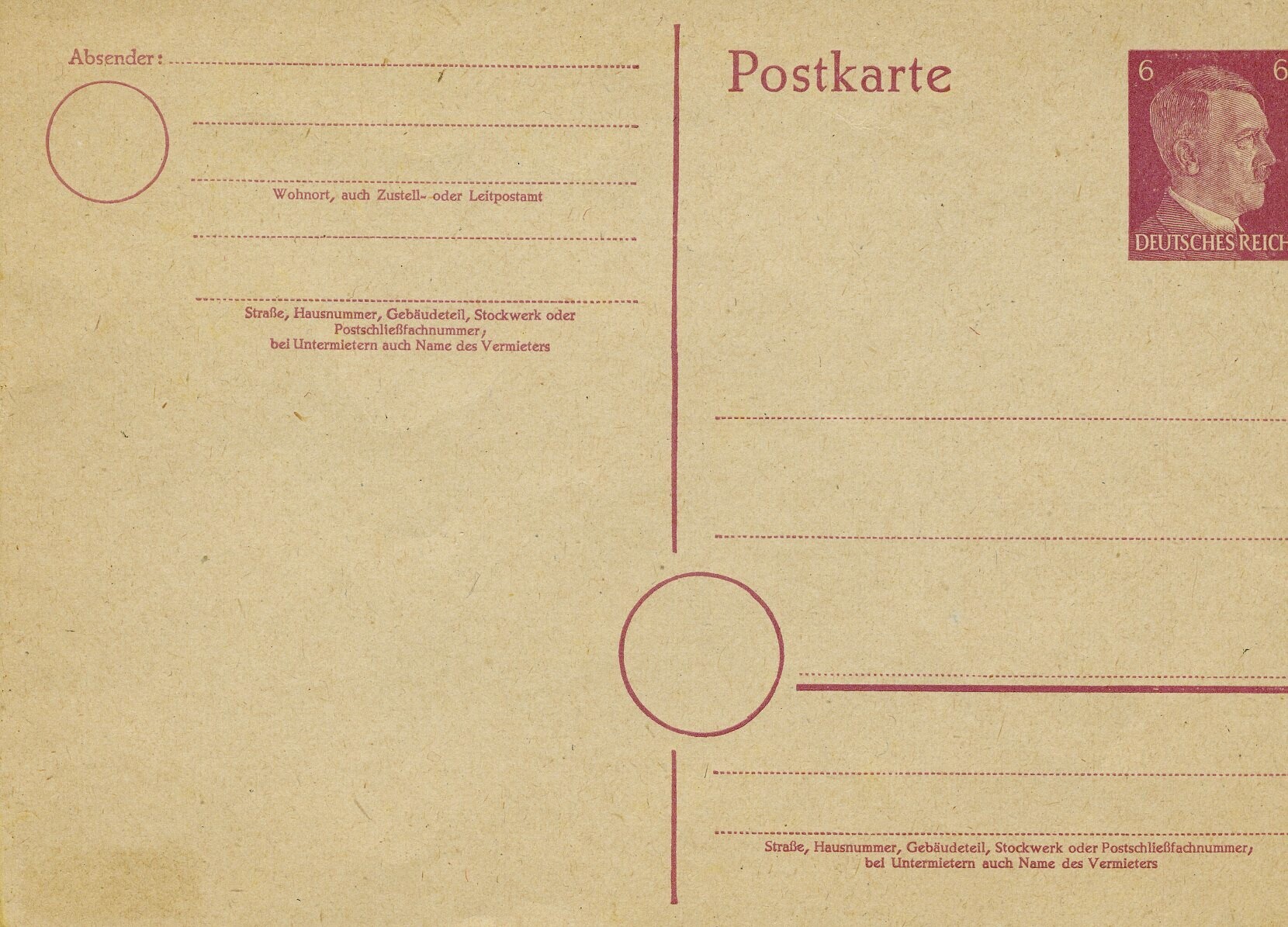 Blanco briefkaart met voorgedrukte postzegel met de beeltenis van Adolf Hitler.