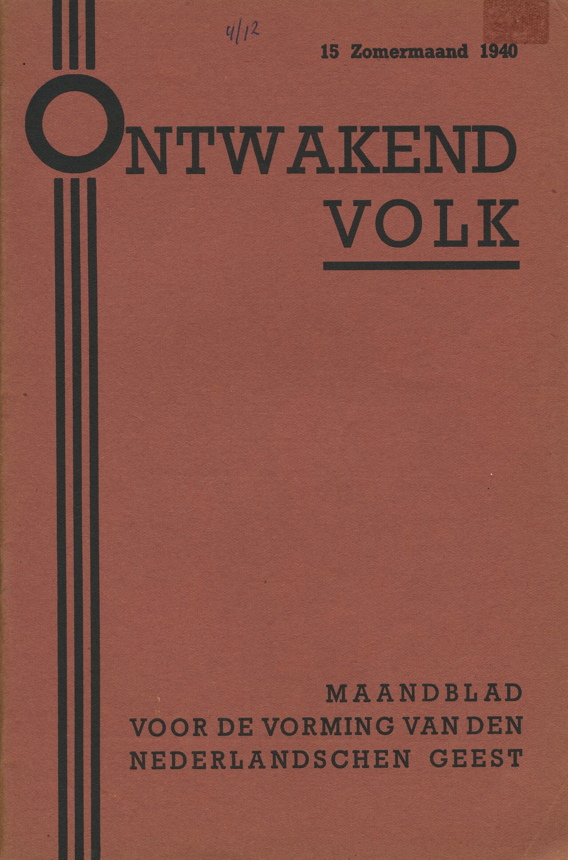 Een exemplaar van ''Ontwakend Volk, maandblad voor de vorming van den Nederlandschen geest'' van de N.S.B. Het betreft de vierde jaargang nummer 12. Zomermaand 1940 (Juni 1940).