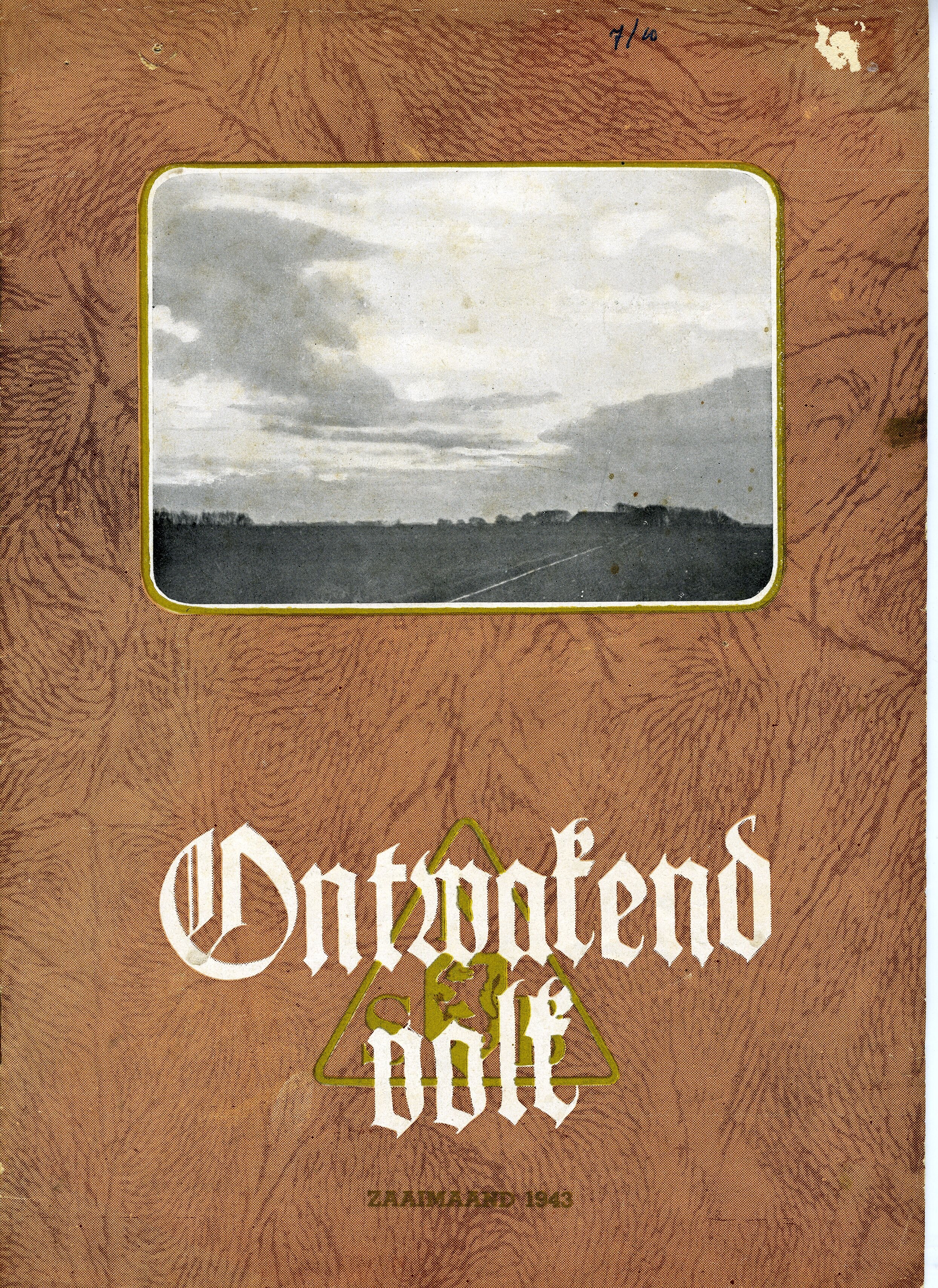 Een exemplaar van ''Ontwakend Volk, maandblad voor de vorming van den Nederlandschen geest'' van de N.S.B. Het betreft de zevende jaargang nummer 10., Zaaimaand 1943 (oktober 1943).