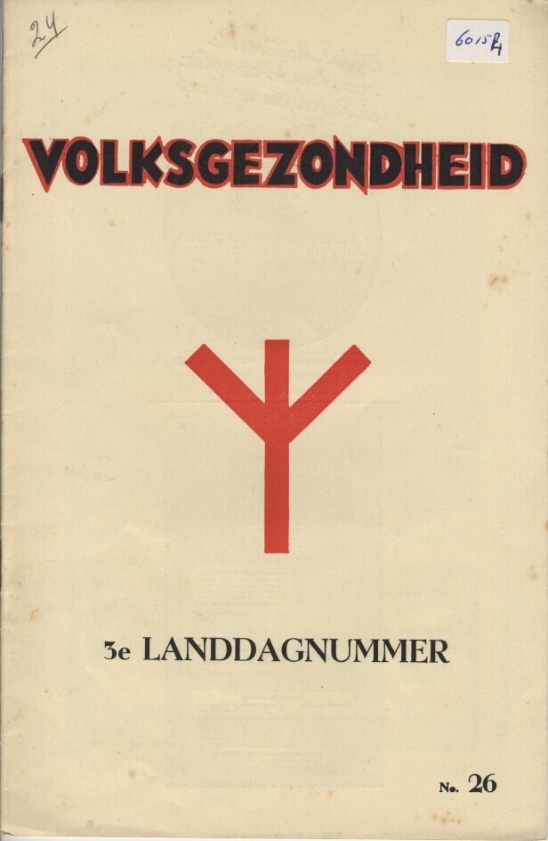 Een uitgave van "Volksgezondheid. Orgaan van Medisch Front". Het betreft de derde jaargang, nummer 26 van 28 Oogstmaand (augustus) 1943 met een artikel over "Het vraagstuk der sterilisatie in de bevolkingspolitiek".