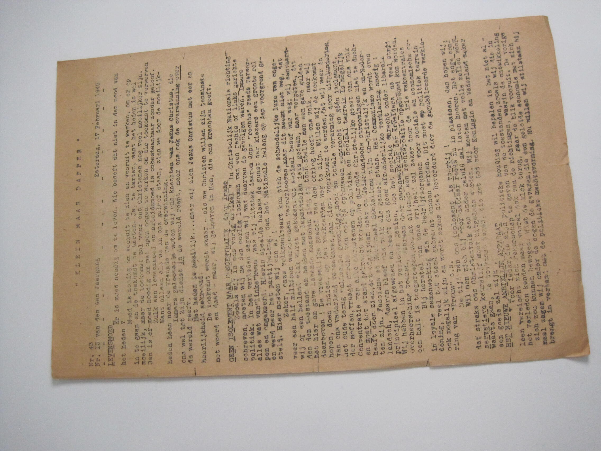 Illegaal Nieuwsbulletin "Klein maar Dapper", no. 43, 4e jaargang no. 13.<br>17 febr. 1945