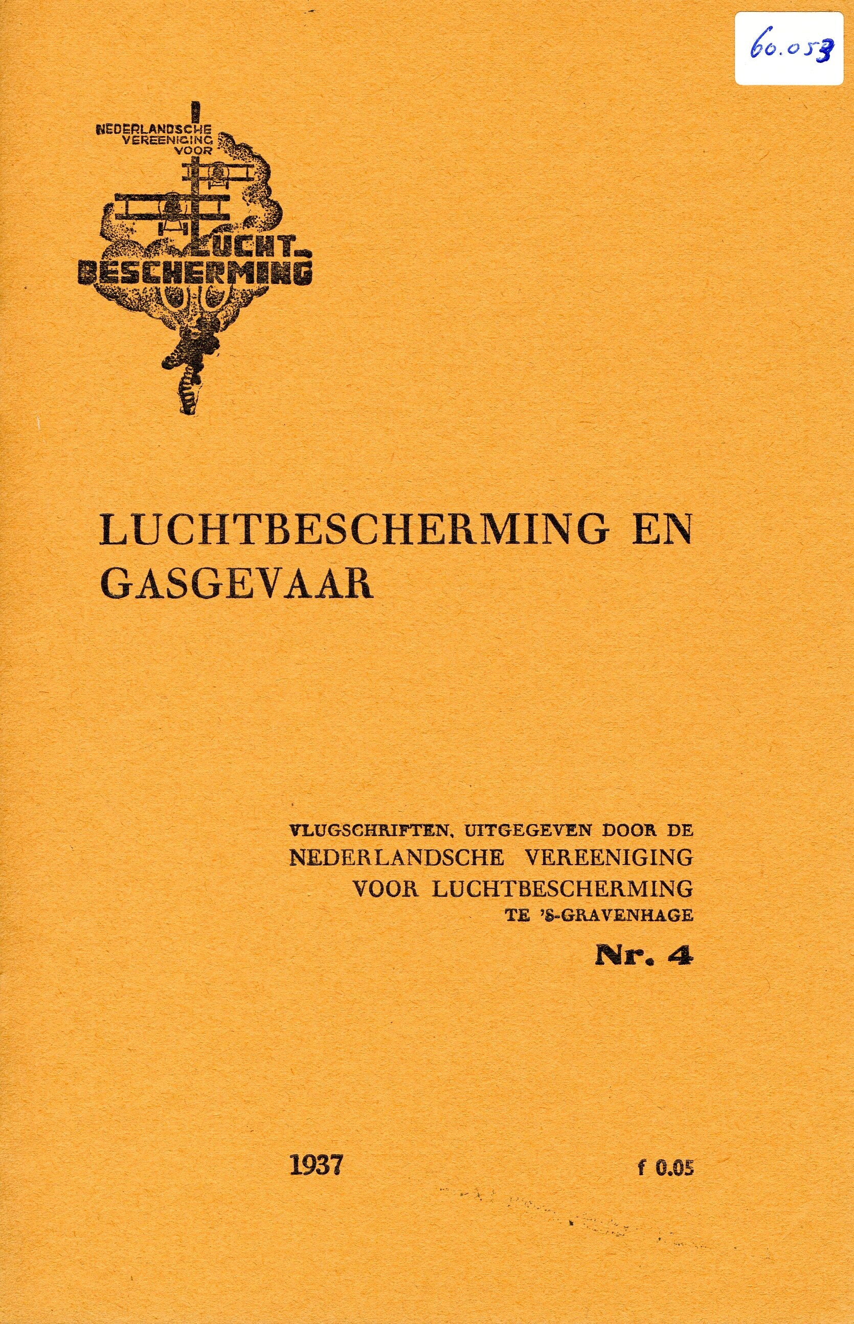 Uitgave van de Nederlandsche Vereeniging voor Luchtbescherming. Het betreft nummer 4 van een zevendelige reeks vlugschriften met instructies over de handelwijze bij luchtaanvallen. Op de oranje kaft is het logo afgebeld van de vereniging. Het vierde nummer omvat 8 pagina's en gaat over luchtbescherming en gasgevaar.