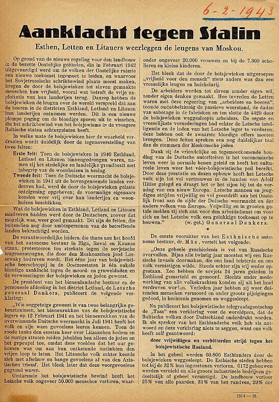 Aanklacht tegen Stalin, Esthen, Letten en Litauers weerleggen de leugens van Moskou