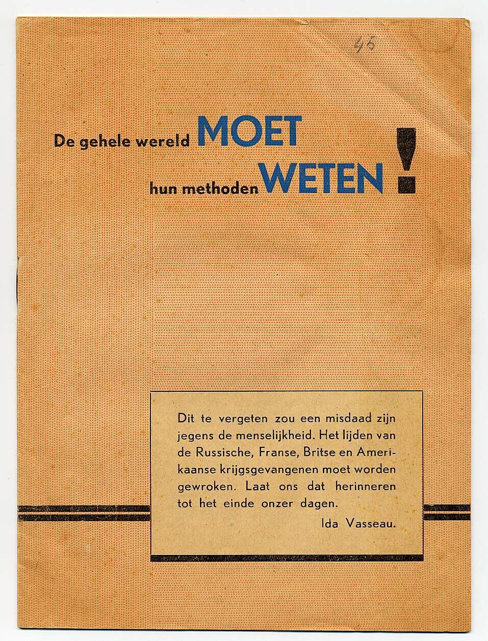 Twee exemplaren van een vertaling van het "Officieel rapport inzake door regelmatige Duitse formaties der Wehrmacht en S.S. in het district Galicië gepleegde oorlogsmisdrijven, samengesteld door de Buitengewone commissie van Onderzoek". Op het omslag een citaat van Ida Vasseau: "Dit te vergeten zou een misdaad zijn jegens de menselijkheid. Het lijden van de Russische, Franse, Britse en Amerikaanse krijgsgevangenen moet worden gewroken. Laat ons dat herinneren tot het einde onzer dagen." De boek omvat 19 pagina’s.