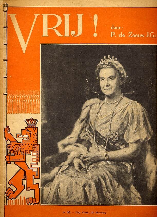 Twee exemplaren van een boek over de bevrijding. Op de oranje kaft de afbeelding van koningin Wilhelmina. Op de achtergrond een oranje vaandel vastgehouden door een Nederlandse Leeuw. Het boekje omvat 23 pagina's en is geillustreerd met tekeningen.