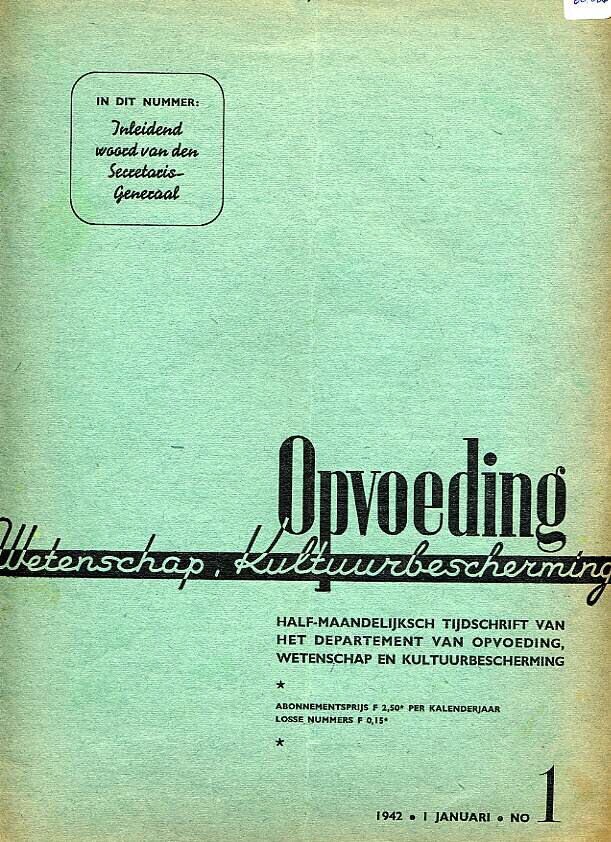 Twee nummers van het halfmaandelijks tijdschrift van het departement van opvoeding, wetenschap en kultuurbescherming. Het gaat om de nummers 1, van 1 januari 1942, en nummer 18, van 15 september 1944.