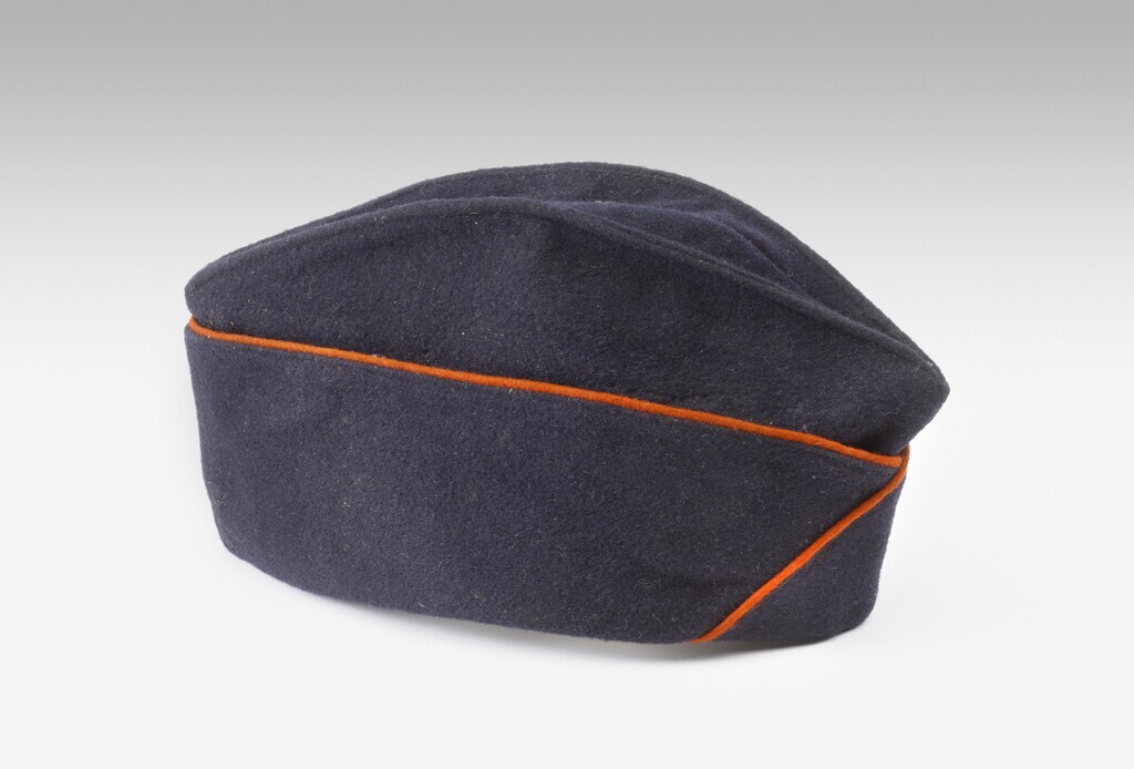 Een Franse donkerblauwe veldmuts met rood bies. De binnenkant is niet gevoerd.
