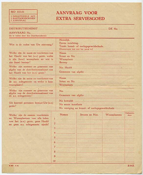 Een blanco aanvraagformulier voor extra serviesgoed.
