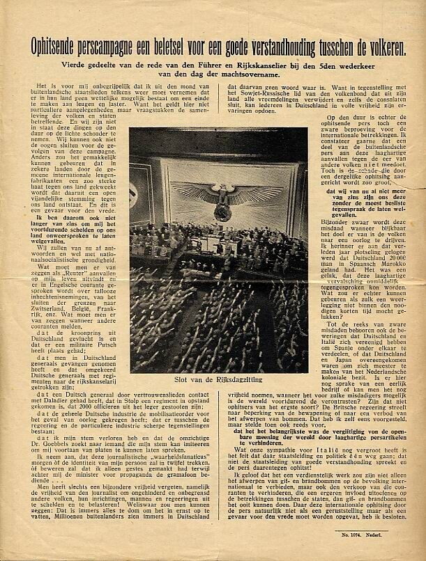 Uitgave met daarin afgedrukt de tekst van een rede van Hitler.