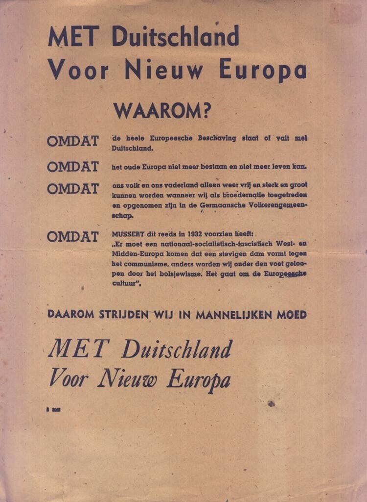 Twee exemplaren van het pamflet waarin de leus "Met Duitschland voor nieuw Europa" wordt uitgelegd.