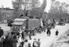 Afbeelding van de intocht van de geallieerden op de Rijksweg 22 te Utrecht; op de achtergrond de Laan van Minsweerd.