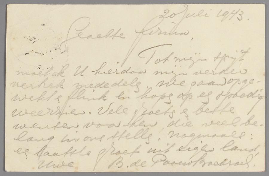 Briefkaarten (3) van Betsy en Philip de Paauw-Bachrach, Westerbork, juli 1943