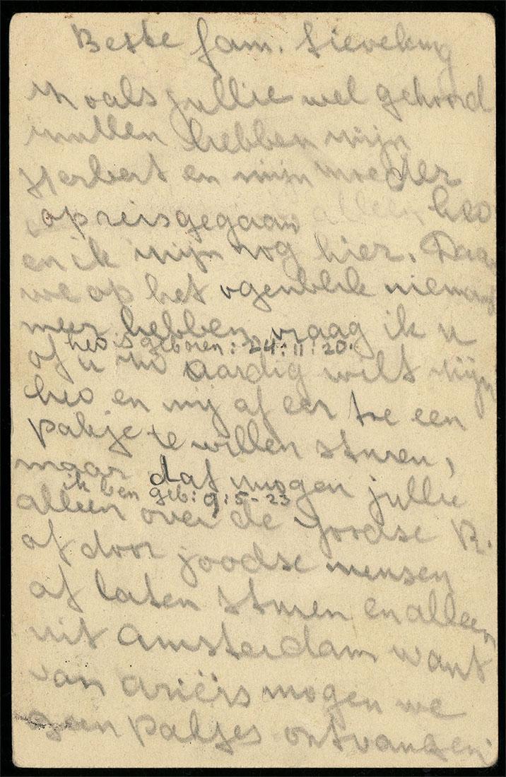 Briefkaarten (9) van Nora van Spier uit Westerbork aan de familie Sieveking in Amsterdam, 1943