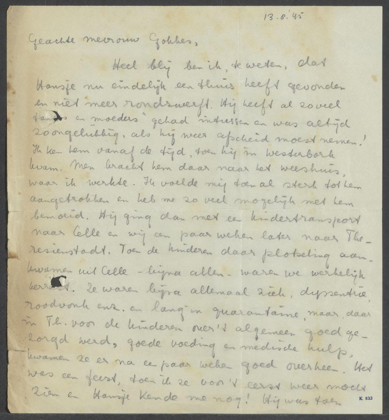 Brief en briefkaart van Ruth Metz aan mevrouw Gokkes in Haarlem en de heer A. van Frank in Eindhoven, 1945