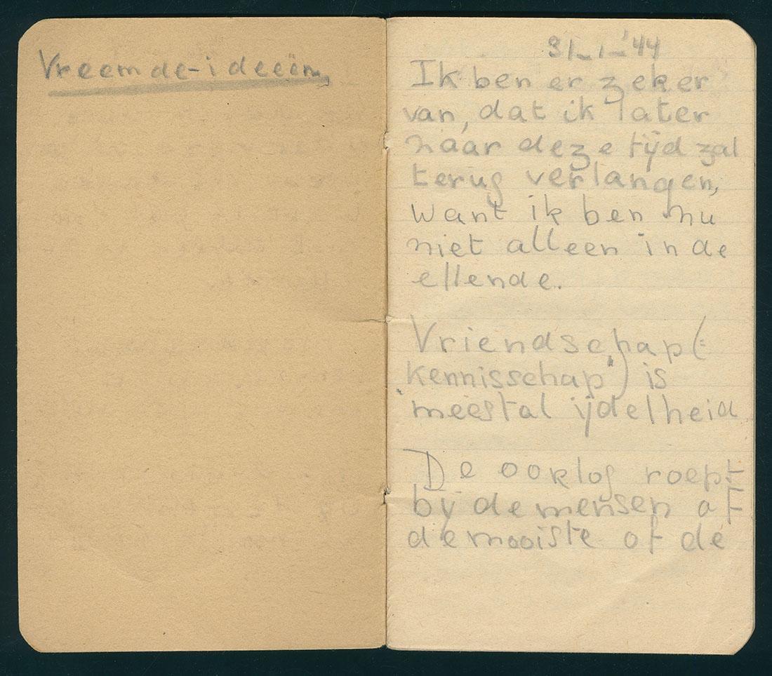 Aantekenboekje bijgehouden tijdens de onderduik door Louki van Oven, 1944
