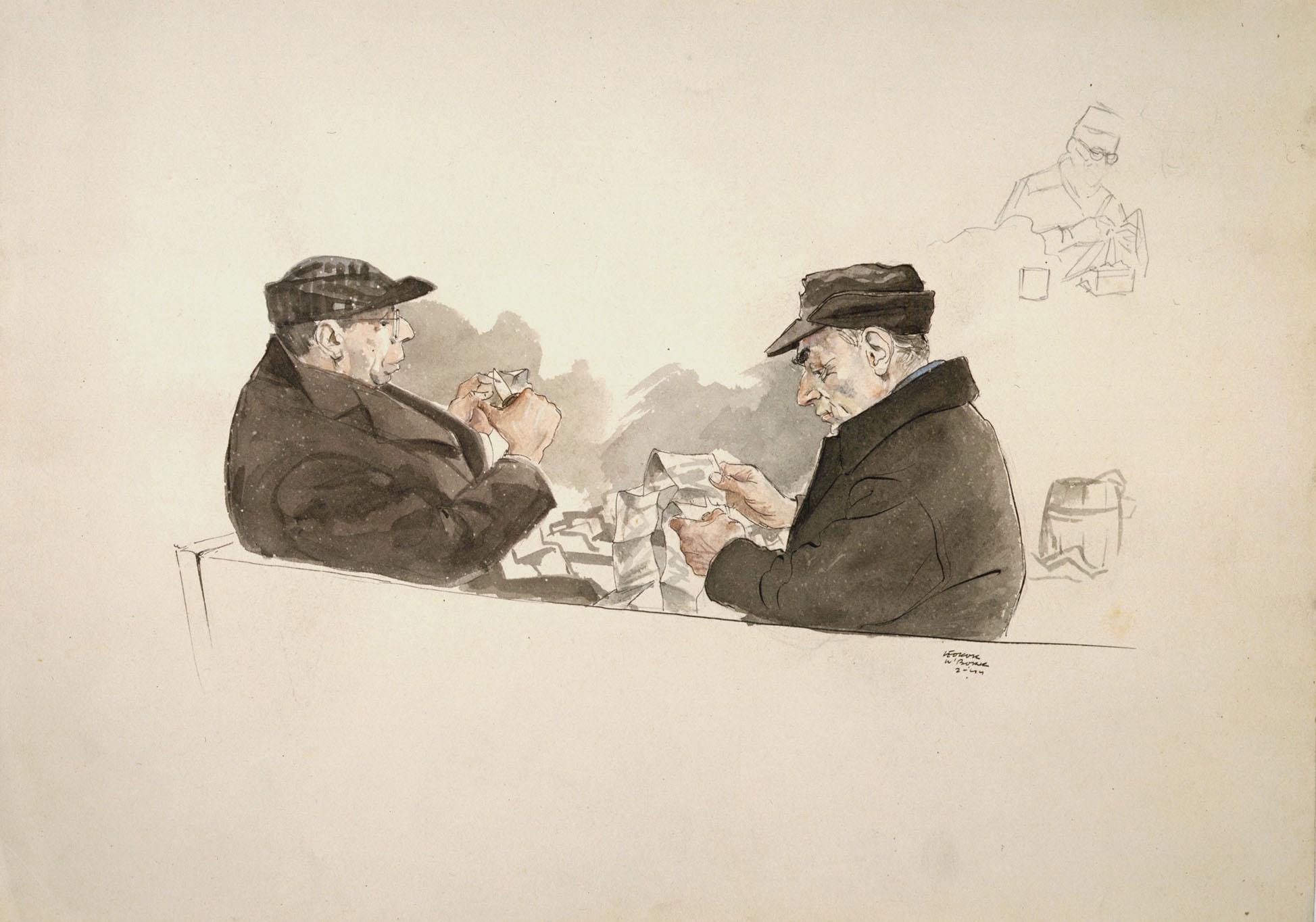In barak 57 waren mannen en vrouwen zo'n zes uur per dag bezig met het splitsen van zilverpapier: het 'zilver' werd gescheiden van de papieren drager.