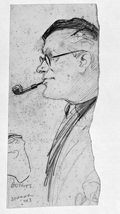 Man, borststuk en profil naar links, met pijp in de mond. Linksonder een potloodschetsje van een achterhoofd met nek en oor.