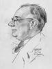 Man, ter halver lijve zittend en profil naar links. Hij leunt met zijn linkerarm op een tafel (?), in de hand heeft hij een penseel (?). Met de rechterhand tekent of schrijft hij.
