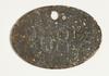 Ovaal plaatje met een ingeslagen viercijferig nummer, middenboven een gat.