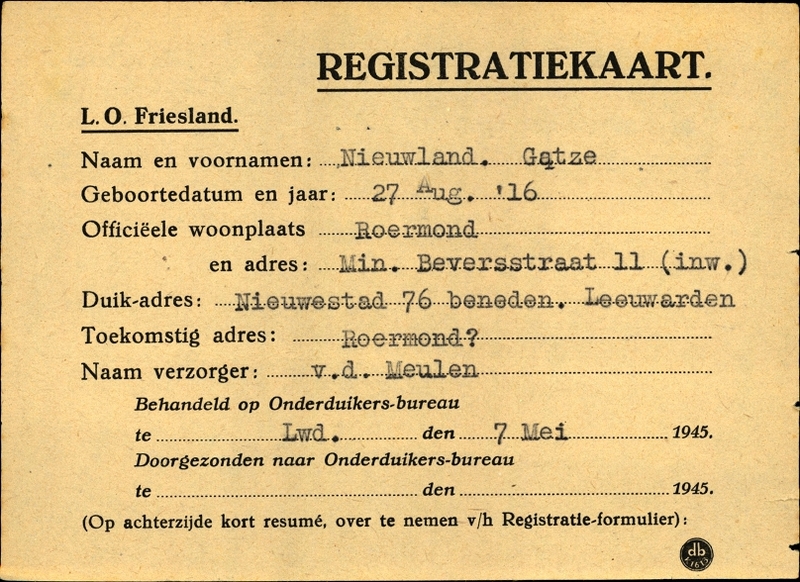 Onderduikinschrijving van Gatze Nieuwland