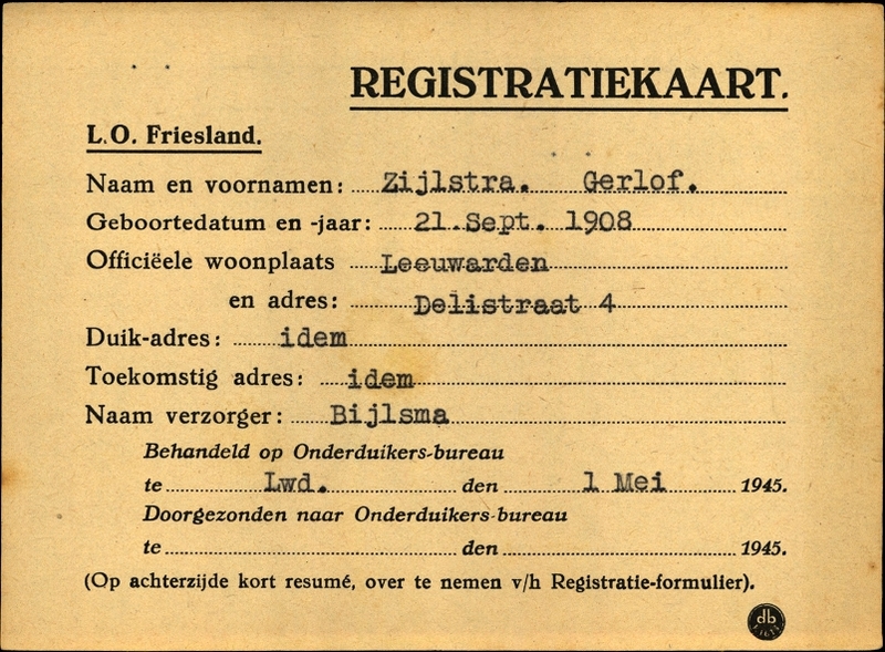 Onderduikinschrijving van Gerlof Zijlstra