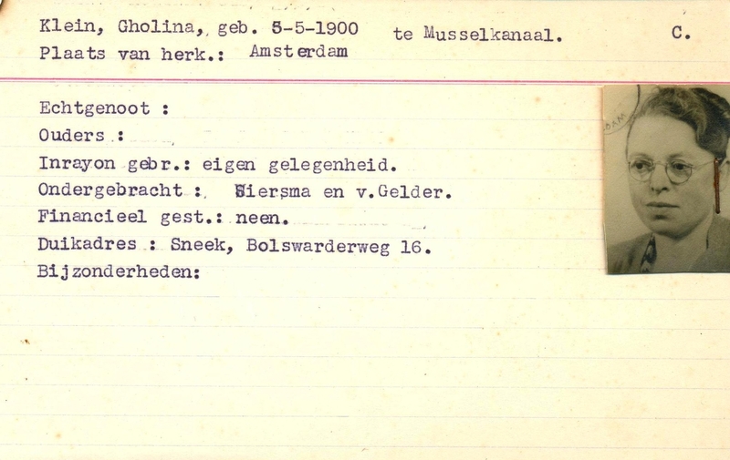 Onderduikinschrijving van Gholina Klein
